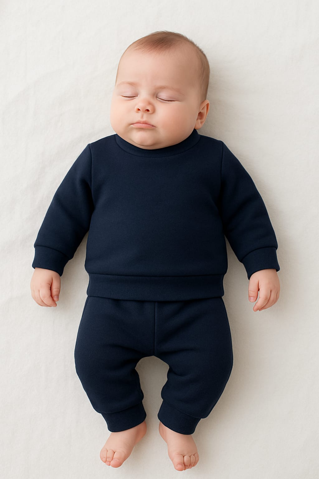 Wrap your little one in comfort with our Cozy Navy Fleece Two-Piece Set — thoughtfully designed for everyday wear. The soft, breathable fleece keeps your baby warm without overheating, while the gentle elastic waistband ensures an easy fit for all-day comfort. Perfect for playtime, nap time, or outings, this set combines timeless style with pure coziness.